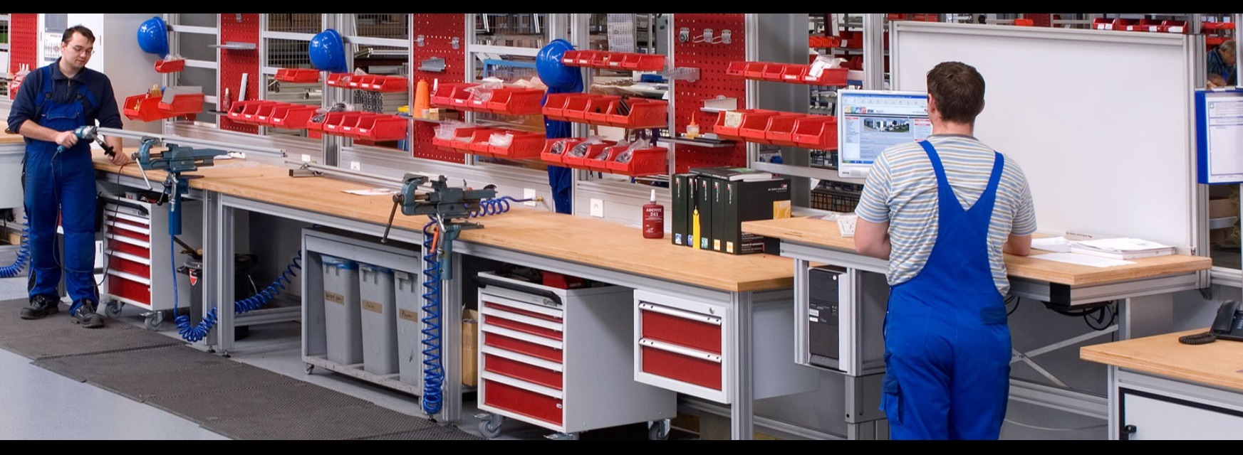 Ergonomically designed industrial workstations not only improve productivity and reduce the rate of mistakes, but they also improve employee's health and well-being. workstations can be quickly and easily adjusted to each employee's particular physical needs. This includes a height adjustment mechanism and a design that allows the work piece, the tools and the bins for providing materials to be optimally positioned within the employee's reach.