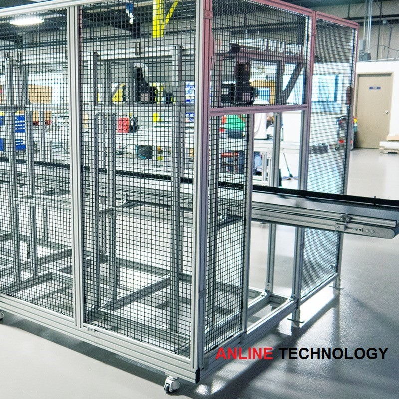When people and machines work together, safety and protection have top priority. Machine housings, cabins and protective fences are used to ensure occupational safety. Anline Technolgy offers tailor-made guarding devices in modular aluminum profile construction, individually and flexibly designed.