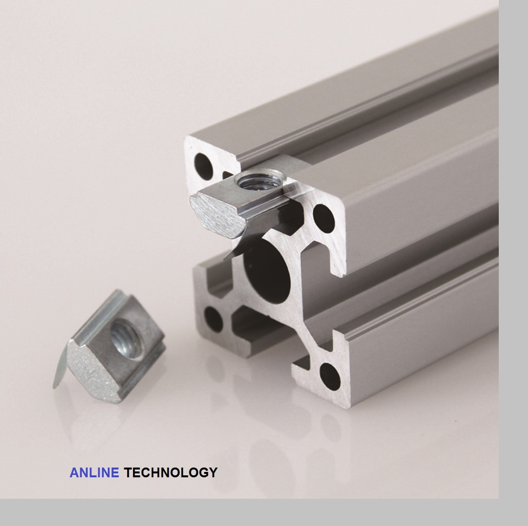 This product is a subsequent nut, used for fastening purposes. First of all, together with its spring leaf, it can be inserted directly at the assembly point. The spring assists with assembly and positioning. To connect the nut to the profile, push the nut into the profile t slot, the spring leaf will be pushed inwards. Furthermore, you will have to flip the nut and have the spring leaf face downwards. As a result, the nut will then be positioned in such a way that the spring leaf faces down and forces the nut upwards into the t slot opening, positioned perfectly. Finally, the nut can slide up and down along the length of the profile to wherever it is required. The connection strength and stability is the same as the t nut.